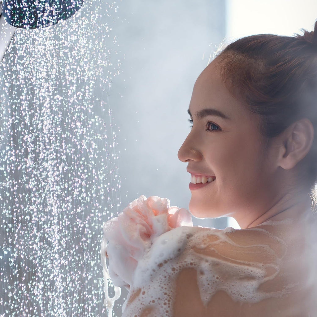 This shower head features multiple spray settings with different functions, making it easy to increase pressure with one hand.