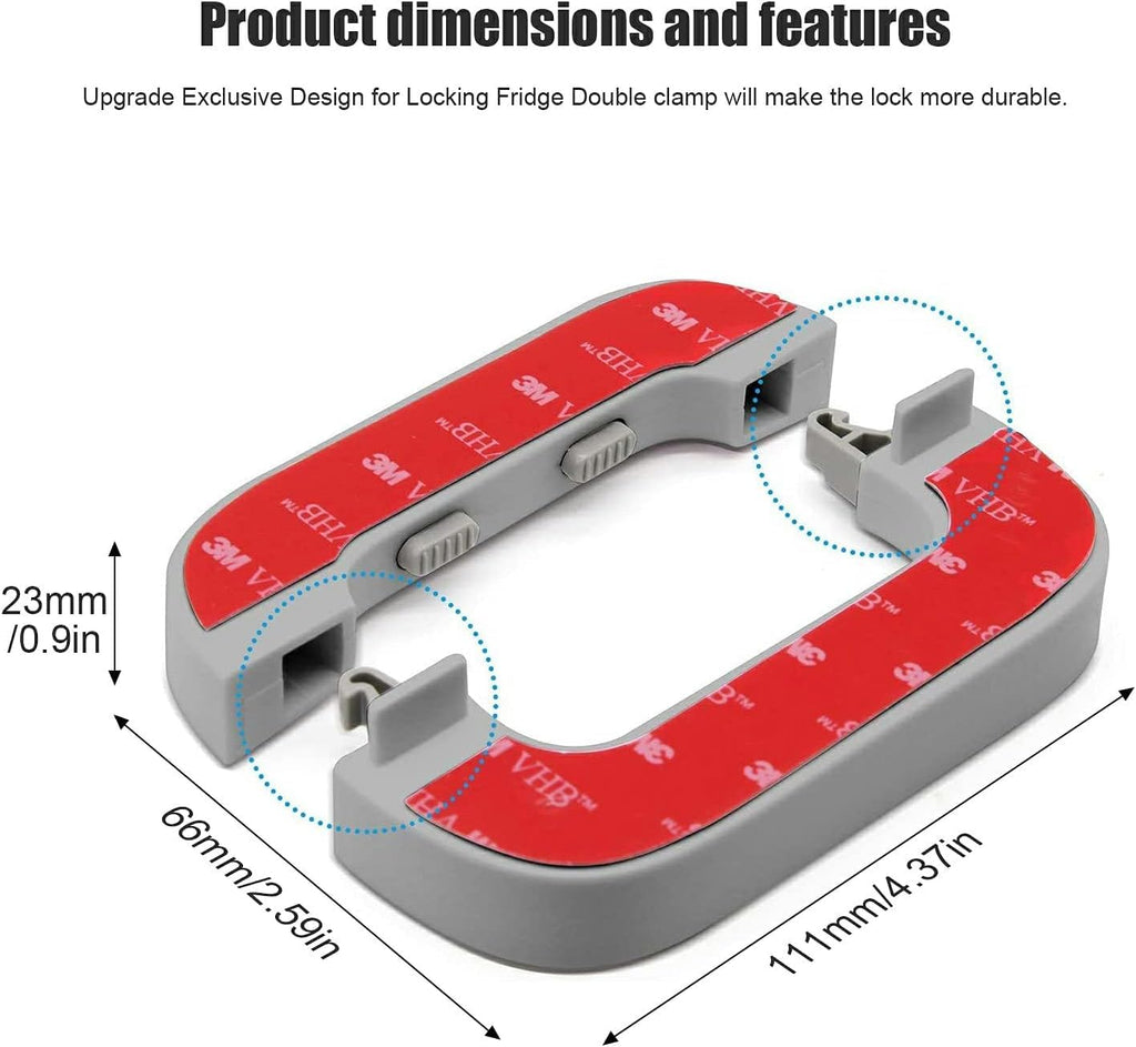 • 4.【Easy to install】- Because of Refrigerator Door Lock Latch is special T shape, lager area for 3M VHB Adhesive tape can make the lock more stable and sturdy. It can also be removed easily without any residual and harm to the fridge. It don't affect your toddler's health and development.