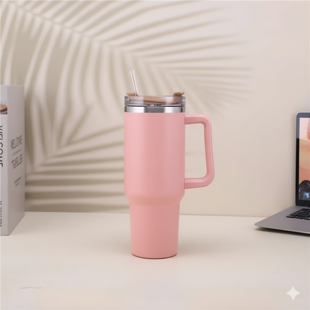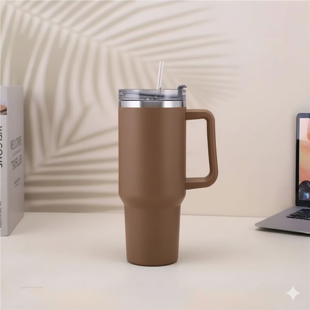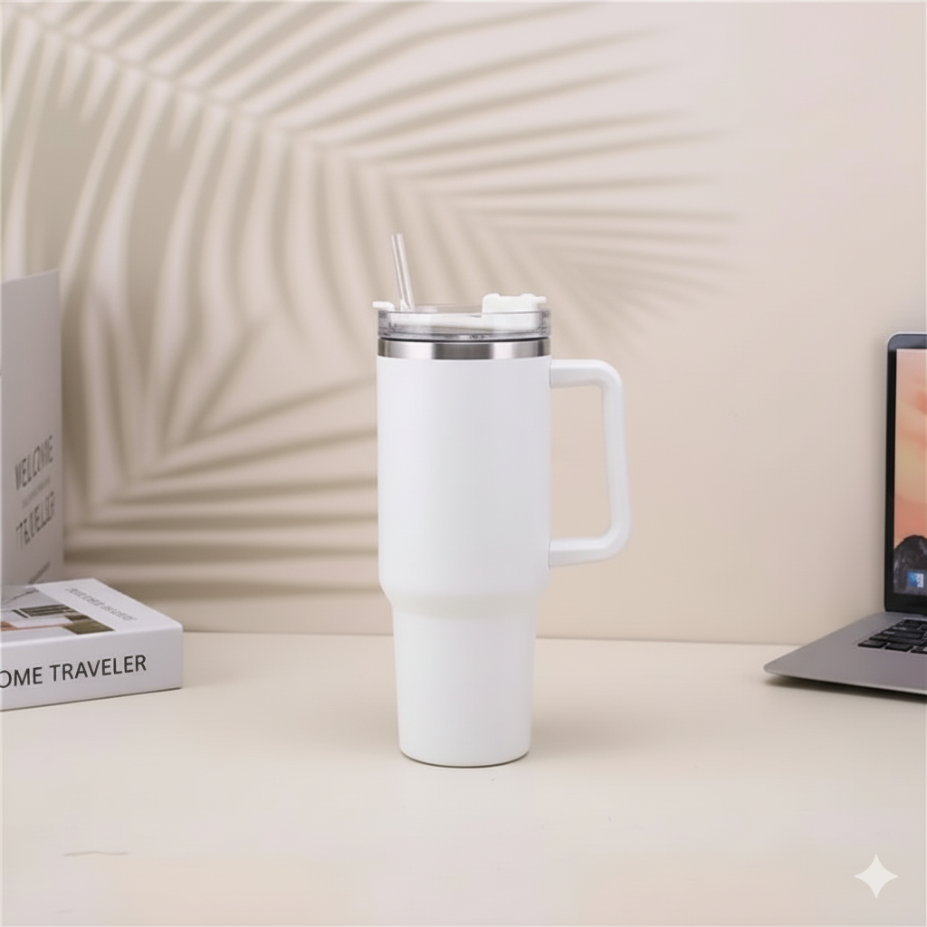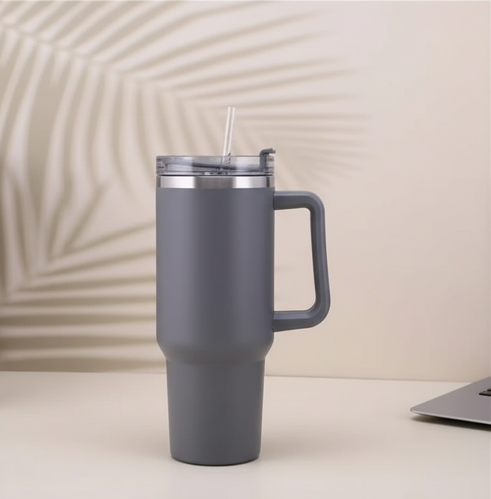 Meet your new all-day hydration companion. This 40oz insulated tumbler is engineered to keep your drinks ice-cold or piping hot for hours, featuring a rugged comfort-grip handle and a versatile lid system. Its tapered base fits perfectly in most car cup holders, making it the ideal choice for commutes, long days at the office, or weekend adventures.