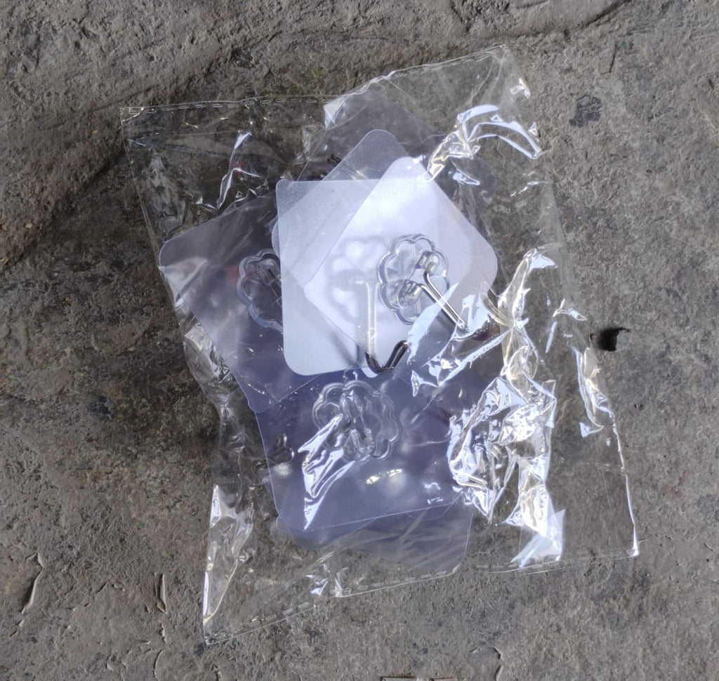 Self Adhesive Heavy Duty Waterproof Transparent Sticky Plastic & Stainless Steel Wall Hooks (10 Pcs Set)