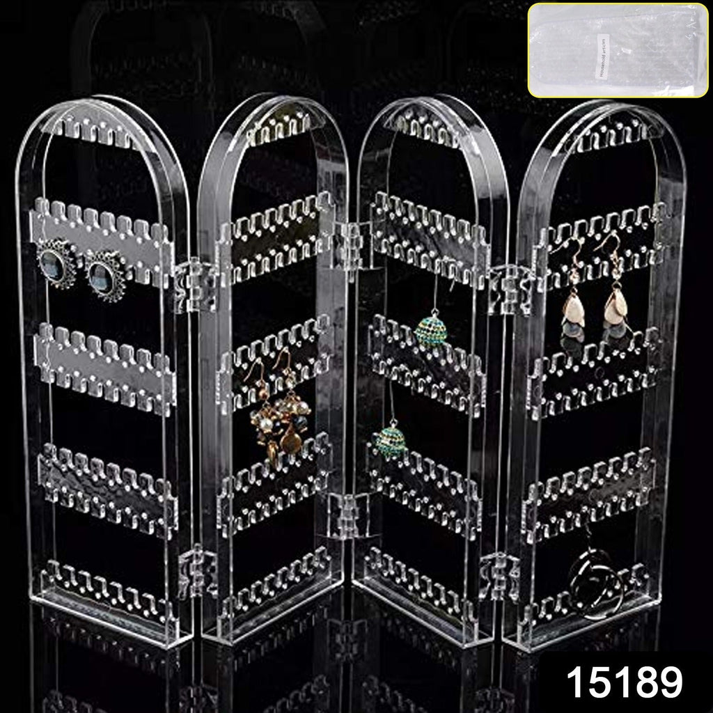 Acrylic Earrings Holder for Women, 4 Doors Foldable Screen Necklace Display Rack, Hanging Jewelry Organizer Double Sided Stand Display, Clear (1 Set)
