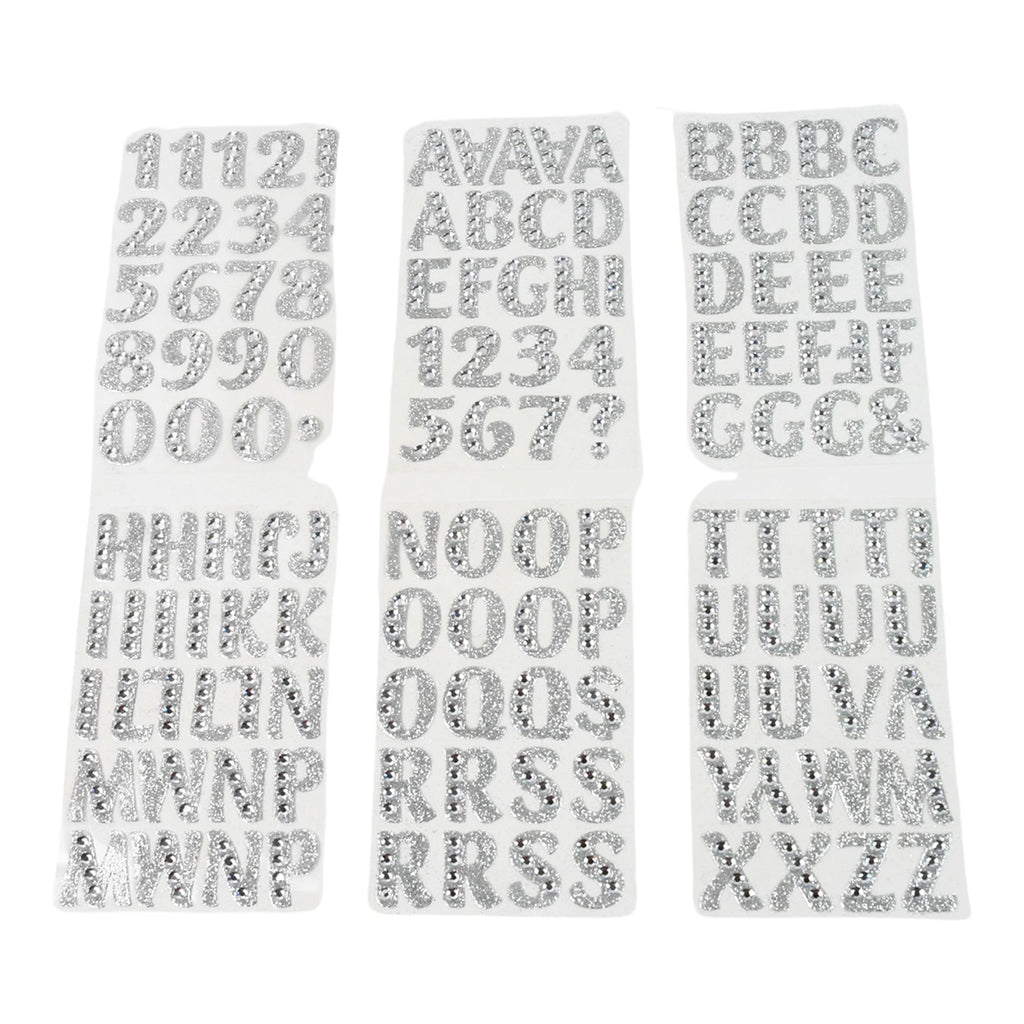 Silver Gem Letter & Numbers Stickers, Project and Craft Accessories, 1 Inch Letters, 130 Count (Pack of 6 Sheets)
